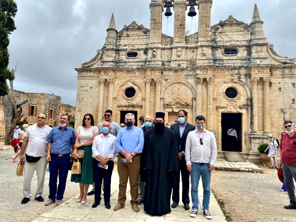 Τα παραπάνω τόνισε ο Γενικός Γραμματέας της Διακοινοβουλευτικής Συνέλευσης Ορθοδοξίας (ΔΣΟ), βουλευτής Λαρίσης της Νέας Δημοκρατίας, κ. Μάξιμος Χαρακόπουλος αντιφωνώντας τον πανοσιολογιώτατο π. Θεολόγο της μοναχικής αδελφότητας της Ιεράς Μονής Αρκαδίου της Κρήτης, στην οποία υποδέχθηκε τα μέλη της ΔΣΟ, ξεναγώντας τα στο καθολικό, την πυριτιδαποθήκη και το μουσείο της μαρτυρικής μονής. Την αντιπροσωπεία της ΔΣΟ καλωσόρισε ο υφυπουργός Υποδομών και Μεταφορών, βουλευτής Ρεθύμνου, κ. Γιάννης Κεφαλογιάννης.