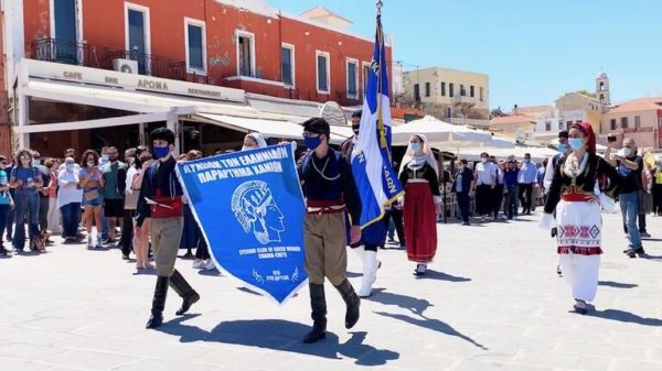 Ο κ. Παναγιωτόπουλος παρακολούθησε παρέλαση αντιπροσωπειών πολιτιστικών και παραδοσιακών συλλόγων των Χανίων με τις σημαίες τους στο παλιό λιμάνι των Χανίων, με αφετηρία το φρούριο του Φιρκά και τερματισμό το Νεώριο Μόρο. Η παρέλαση έγινε υπό τους ήχους της φιλαρμονικής του Δήμου Χανίων.