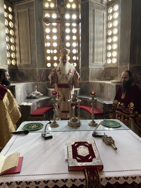 Την παραμονή της εορτής, 6 Φεβρουαρίου, νωρίς το απόγευμα τελέστηκε ο Μικρός Εσπερινός και ο Αγιασμός. Κατόπιν τελέστηκε ο Μέγας Εσπερινός στο Καθολικό της Ιεράς Μονής χοροστατούντος του Σεβασμιωτάτου Ποιμενάρχου μας κ. Γεωργίου και με τη συμμετοχή εντός του Ναού μόνο των πιστών που αναλογούσαν, σύμφωνα με τα ισχύοντα υγειονομικά μέτρα.