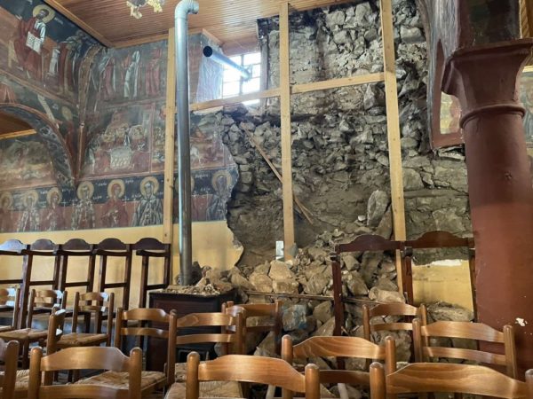 Ο δεσπότης μέσα στα συντρίμμια της εκκλησιάς