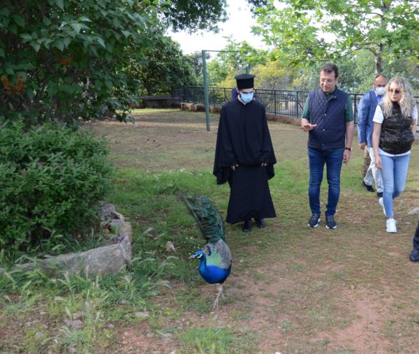 Μετά την ενδιαφέρουσα συζήτηση που είχε με τον Καθηγούμενο, ο κ. Δήμαρχος με την συνοδεία του ξεναγήθηκε στο ναΰδριο, τις αίθουσες διδασκαλίας, την ιστορική βιβλιοθήκη και τους λοιπούς χώρους της Σχολής, όπου εξέφρασε τον θαυμασμό του για τη λειτουργία της. Αφού περπάτησε στους μαγευτικούς κήπους που περιβάλλουν την Σχολή, ευχαρίστησε θερμά τον Καθηγούμενο και την περί αυτόν αδελφότητα για την υποδοχή και την φιλοξενία.