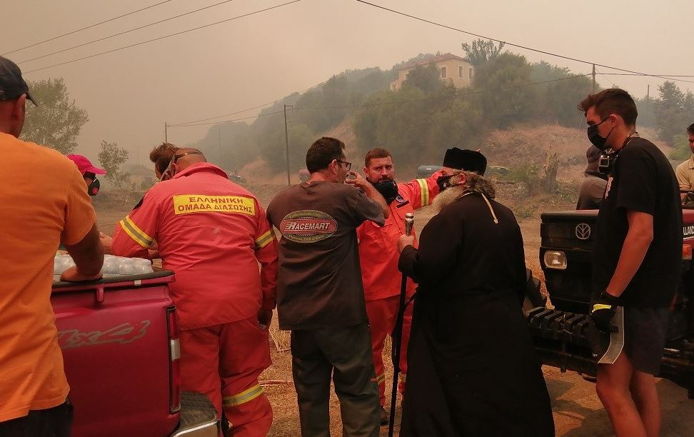 Επίσης από την Ιερά Μητρόπολη προσφέρθηκε νερό και τροφή στους πυροσβέστες.