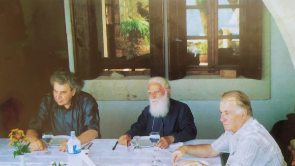 Το καλοκαίρι του 1999 επισκέπτεται την ΟΑΚ και συζητά με το μακαριστό Κισάμου και Σελίνου κυρό Ειρηναίο και με τον κ. Αλεξ. Παπαδερό προσωπικές του αγωνίες για το μέλλον της Ελλάδος, της Κρήτης και του κόσμου, καθώς και την επιθυμία του η νεκρώσιμη ακολουθία και η ταφή του να πραγματοποιηθούν στην πατρίδα του, τον Γαλατά Χανίων.