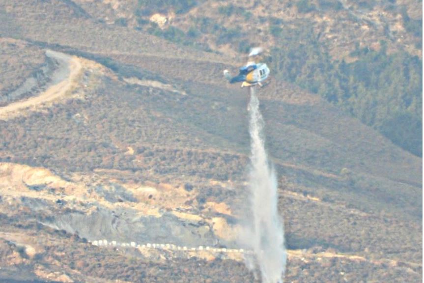 Η συμβολή του πληρώματος του ελικοπτέρου ήταν καθοριστική, καθώς με τις ρίψεις νερού σε δύσβατες περιοχές, ανεκόπη η πορεία της φωτιάς προς το δάσος της Παναγιάς Τσουκαλαριάς, γλιτώνοντας τα χειρότερα.
