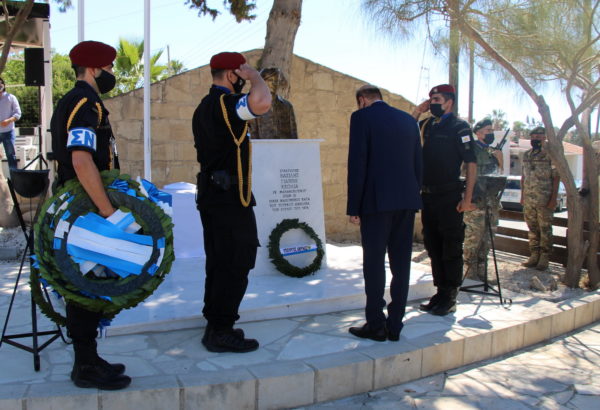 Σε ομιλία του στα αποκαλυπτήρια της προτομής του, ήρωα Βασίλη Κκολιά, στο Μαρώνι, ο Υπουργός Άμυνας, σύμφωνα με ανακοίνωση είπε ότι «εργαζόμαστε για τον τερματισμό της κατοχής και την επανένωση της πατρίδας μας, έτσι ώστε να παραδώσουμε στη νέα γενιά μια χώρα απαλλαγμένη από στρατούς κατοχής και διαχωριστικές γραμμές».