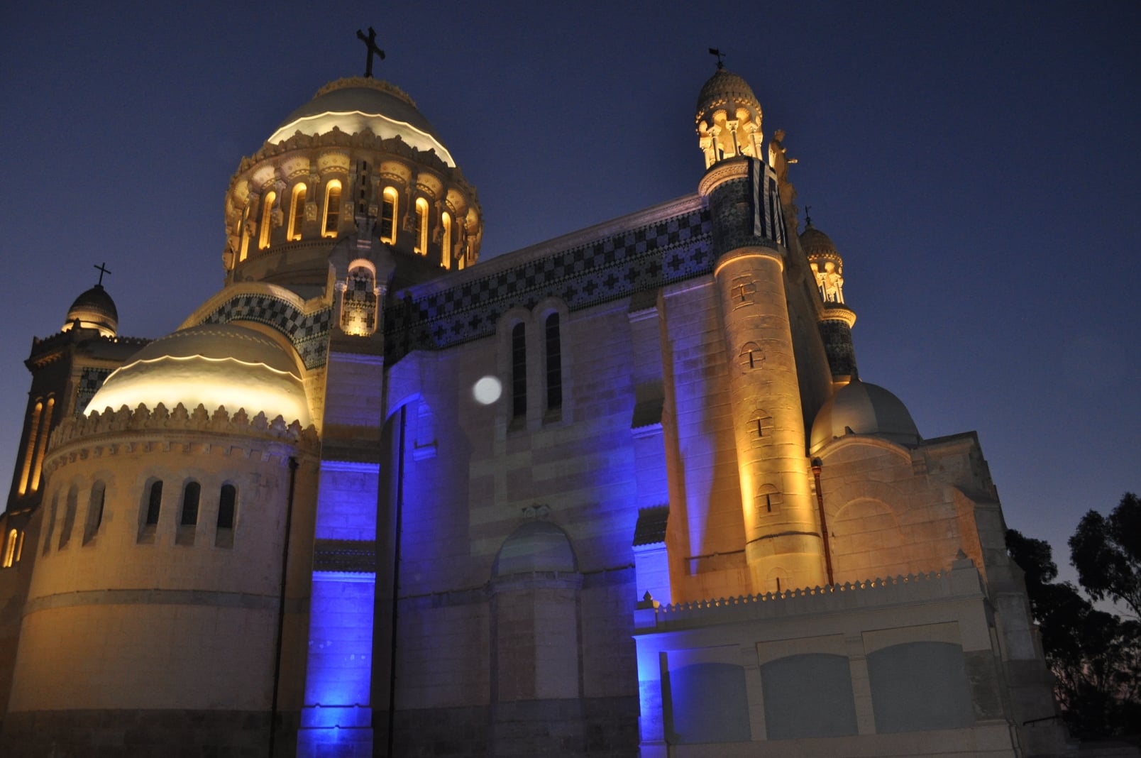 Η εκκλησία Notre Dame d’Afrique στην παλαιά πόλη του Αλγερίου φωταγωγημένη με τα ελληνικά χρώματα για την επέτειο των 200 ετών από την Ελληνική Επανάσταση.