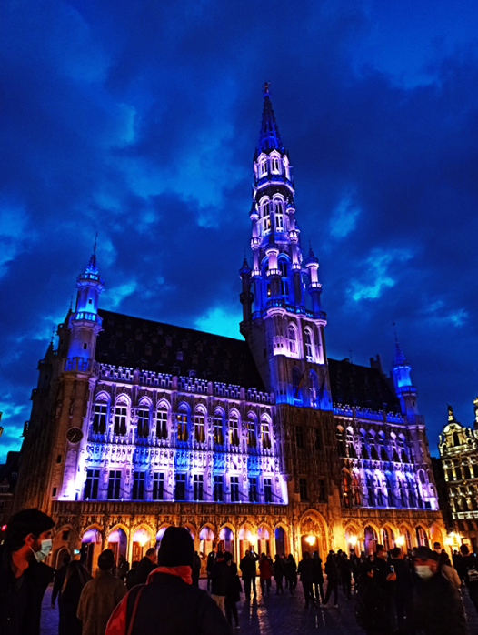 Το Δημαρχείο των Βρυξελλών στην Grand Place φωταγωγήθηκε χθες με τα ελληνικά χρώματα για τους εορτασμούς της επετείου των 200 ετών από την Επανάσταση του 1821.