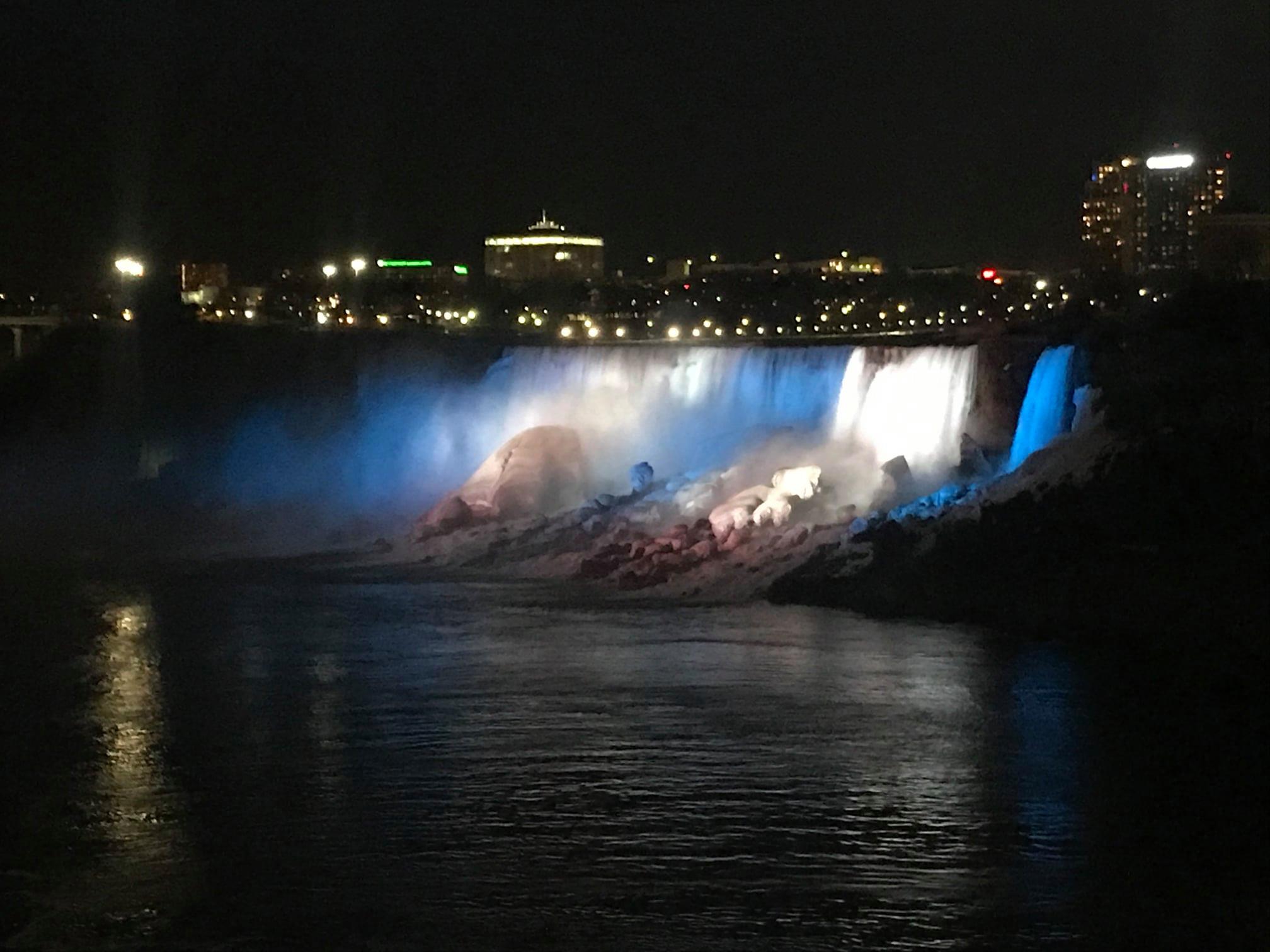 Οι καταρράκτες του Νιαγάρα στο Οντάριο του Καναδά φωτίστηκαν γαλανόλευκα στο πλαίσιο των εορτασμών για την επέτειο των 200 ετών από την έναρξη του Αγώνα για την Ανεξαρτησία.