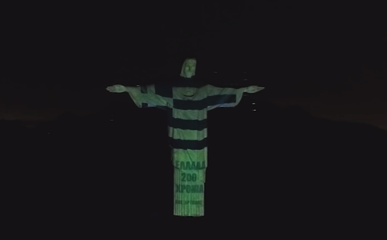 Το Άγαλμα του Ιησού στο Ρίο ντε Τζανέιρο φωταγωγημένο για την επέτειο των 200 ετών από την έναρξη της Επανάστασης του 1821