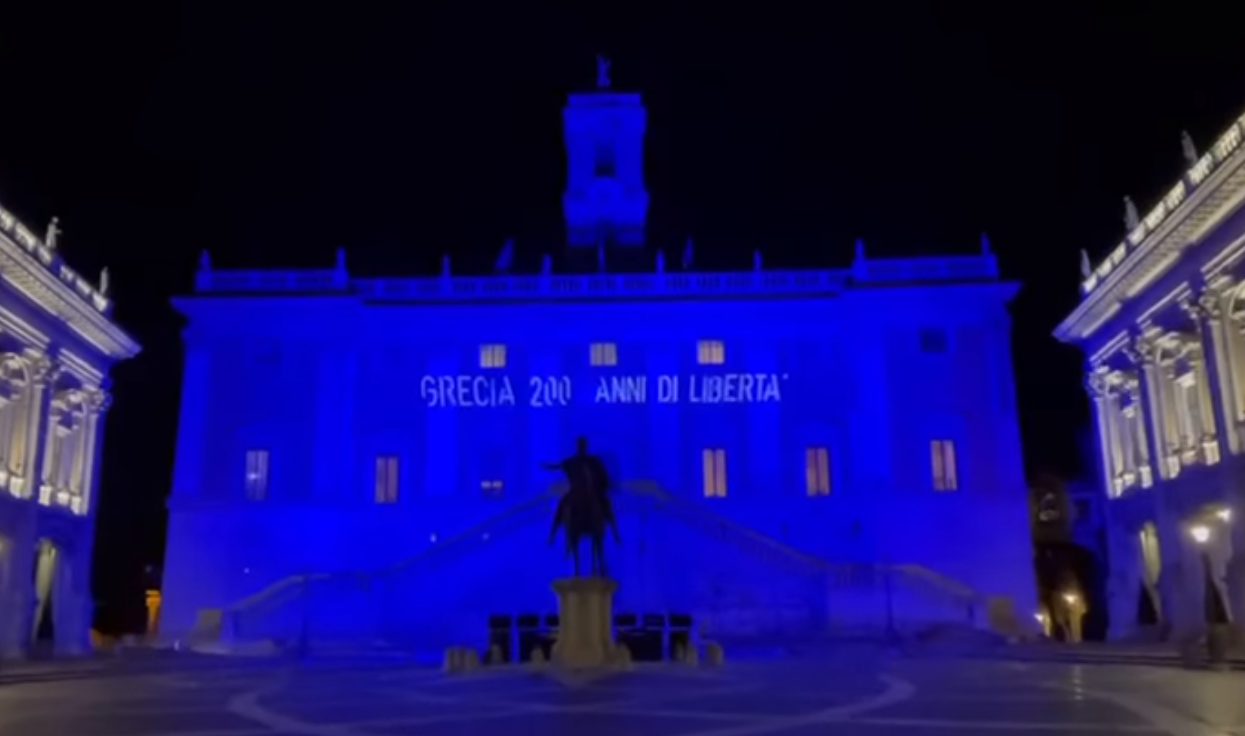 Το Καπιτώλιο της Ρώμης φωτίστηκε με τα χρώματα της ελληνικής σημαίας προς τιμή της επετείου των 200 ετών από την Επανάσταση του 1821
