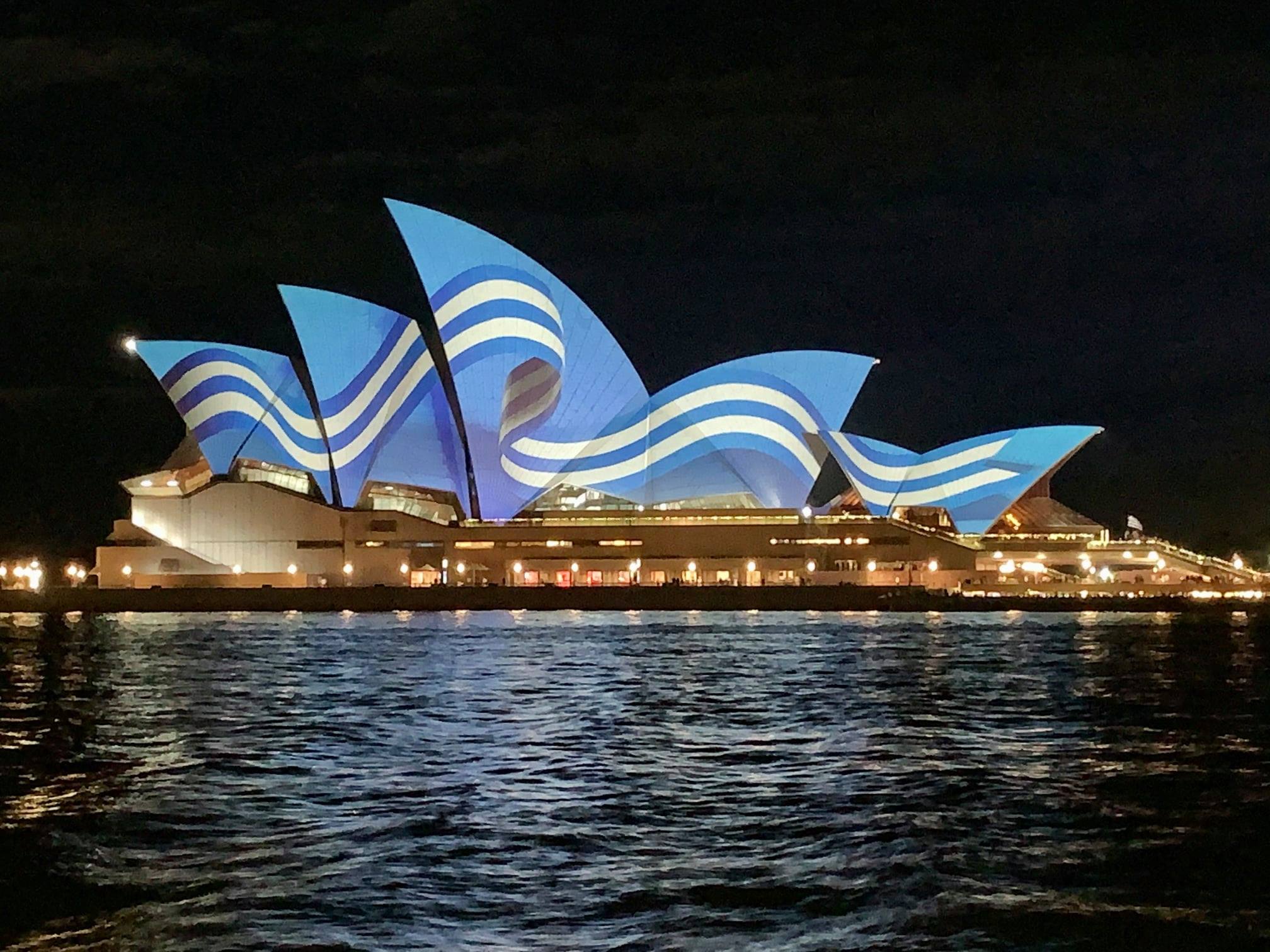Η εμβληματική Όπερα του Σύδνεϋ φωταγωγημένη με τα χρώματα της ελληνικής σημαίας προς τιμήν της επετείου των 200 ετών από την Επανάσταση του 1821.