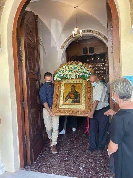 Μετά το πέρας της Θείας Ευχαριστίας, ακολούθησε η λιτανεία της Εικόνος πέριξ του ιερού ναού, η αρτοκλασία και η απόλυσις.