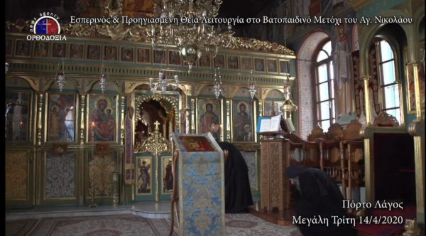Δείτε την Προηγιασμένη Θεία Λειτουργία στο Βατοπαιδινό Μετόχι Αγίου Νικολάου Πόρτο Λάγος από την pemptousiatv: