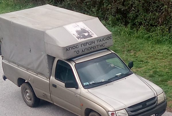 Υποσημειώνω ότι “όλος τυχαίως” την ώρα που γραφόταν αυτό το κομμάτι για τον Άγιο Παΐσιο πέρασε το εν λόγω αγροτικό και κατάφερα να το φωτογραφήσω για του λόγου το αληθές… Πάλι “όλος τυχαίως”… Θαυμαστές στιγμές της παρουσίας του Αγίου και όλων των Αγίων μας στην ζωή μας!