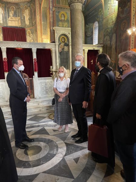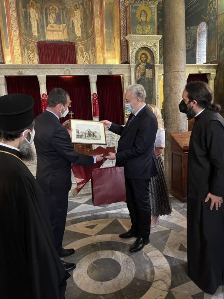 Τον κ. Πρωθυπουργό υποδέχθηκε ο Κοσμήτορας της Θεολογικής Σχολής του Εθνικού και Καποδιστριακού Πανεπιστημίου Αθηνών Αν. Καθηγητής κ. Χρήστος Καραγιάννης, ο οποίος τον ενημέρωσε για την ιστορία και τη μοναδικότητα του ιερού ναού. Ο κ. Κριβοκάπιτς εξέφρασε το θαυμασμό του και δήλωσε εντυπωσιασμένος από την αρχιτεκτονική και την αγιογράφηση του Φ. Κόντογλου.