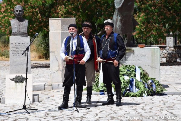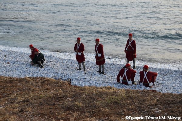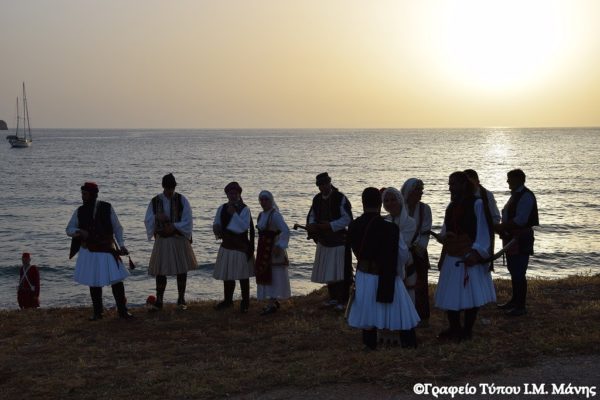 Στη συνέχεια στο ακρογιάλι του Διρού, πραγματοποιήθηκε η αναπαράσταση της απόκρουσης του στρατού του Ιμπραήμ από τις Μανιάτισσες (24/6/1826), τα αποκαλυπτήρια της προτομής προς τιμήν της Ηρωίδας Μανιάτισσας που φιλοτέχνησε ο γλύπτης Πέτρος Γεωργαρίου και επιμνημόσυνη δέηση.