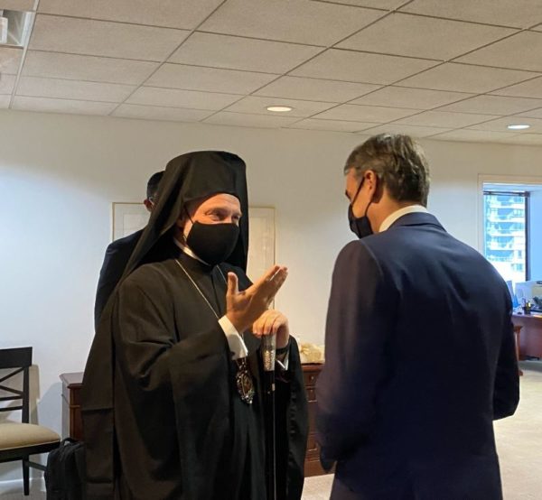 Θέματα της Ομογένειας και τρόποι συνεργασίας για την καλύτερη υποστήριξη του πολυδιάστατου έργου της Αρχιεπισκοπής τέθηκαν επί τάπητος κατά τη συνάντηση του Σεβ. Αρχιεπισκόπου Αμερικής κ. Ελπιδοφόρου με τον Πρωθυπουργό Κυριάκο Μητσοτάκη, στα γραφεία της Μόνιμης Αντιπροσωπείας της Ελλάδας στον ΟΗΕ την Παρασκευή 24 Σεπτεμβρίου 2021.