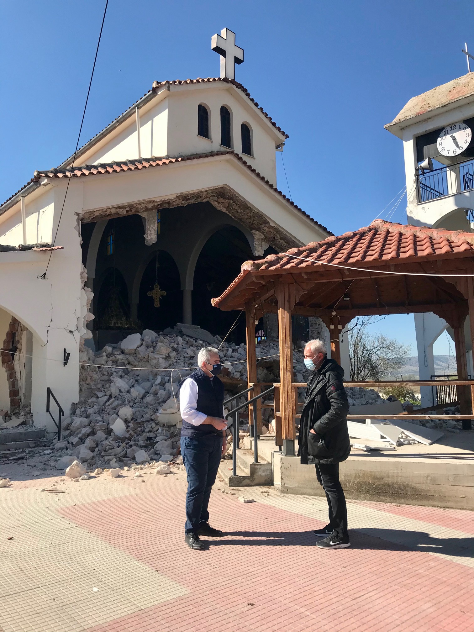 Ο Θεσσαλός πολιτικός, κατά τις επισκέψεις του στα σεισμόπληκτα χωριά είδε ιδίοις όμμασι τις ζημιές σε ιστορικούς ναούς και περικαλλείς εκκλησίες, ενώ ενημερώθηκε αναλυτικά από τους οικείους επισκόπους, Λαρίσης και Τυρνάβου κ. Ιερώνυμο και Ελασσώνος κ. Χαρίτωνα. Όπως χαρακτηριστικά είπε στην κ. Μενδώνη «ο εγκέλαδος έπληξε και θρησκευτικά μνημεία που χρήζουν άμεσης προστασίας, όχι μόνο ως γέφυρες με το ιστορικό μας παρελθόν, αλλά και ως οδοδείκτες για το μέλλον. Τα μνημεία είναι ζωντανά τεκμήρια της ταυτότητάς μας και χρέος μας είναι η συντήρηση και αποκατάστασή τους».