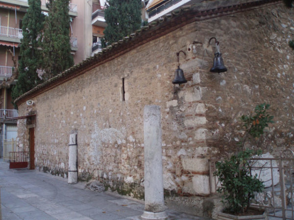 Έξω από το ναό, στα δεξιά της εισόδου του, σώζεται η κολώνα, στην οποία η Αγία Φιλοθέη βασανίστηκε από τους Τούρκους.