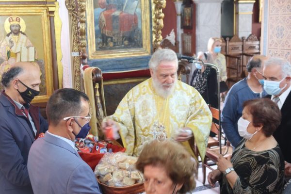 Τέλος ευχαρίστησε και πάλι τον Εφημέριο του Ναού, Αρχιμ. Δωρόθεο Γάγγο για την πολύμορφη διακονία του, τον Θεματικό Αντιπεριφερειάρχη Μεταφορών κ. Μ. Δαδάο, διότι και ως Αντιπεριφερειάρχης και ως Ιεροψάλτης ευρίσκεται πάντοτε πρόθυμα στη διάθεση της Εκκλησίας, καθώς και τους Επιτρόπους του Ναού, και ιδιαίτερα τον κ. Δημ. Κοσμά, ο οποίος ως Διευθυντής ΕΛΤΑ, Δημοτικός Σύμβουλος και Επίτροπος προσφέρει πολύτιμες υπηρεσίες στο Ναό και την Εκκλησία, και τον κ. Γ. Χωριανόπουλο, ο οποίος επί σειράν ετών με αφοσίωση διακονεί τον Ιερό Ναό, και ευχήθηκε σε όλους τους εορτάζοντες.