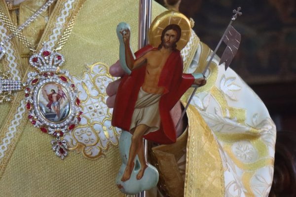 «Όπως ακριβώς», ανέφερε χαρακτηριστικά, «αγωνιζόμεθα να πάρουμε ένα πτυχίο και όταν το πάρουμε συνεχίζουμε τον αγώνα μας για να επιβεβαιώσουμε ότι το αξίζουμε, έτσι και οι πιστοί οφείλουμε να τιμούμε το όνομα του Χριστιανού, το οποίο οι Μάρτυρες, όπως ο σήμερα τιμώμενος Άγιος Γεώργιος, προέβαλαν ενώπιον των διωκτών τους, λέγοντας “Χριστιανός ειμί”, παραθεωρώντας το κανονικό τους όνομα».