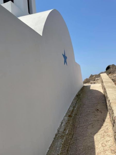 Με αστέρια επέλεξαν άγνωστοι να βανδαλίσουν περιμετρικά το Ιερό παρεκκλήσι του Αγίου Μάρκου στο Ημεροβίγλι της Σαντορίνης, χωρίς να είναι γνωστό το πότε ακριβώς σημειώθηκε το περιστατικό, όπως πληρoφόρησε ο Ιερός Ναός Εισοδίων της Θεοτόκου Ημεροβιγλίου Θήρας μέσω ανάρτησης σε μέσο κοινωνικής δικτύωσης την Τετάρτη 11 Αυγούστου 2021.