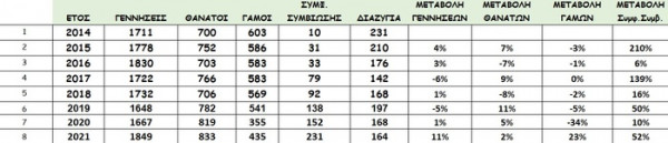 Αναλυτικά τα δημογραφικά στατιστικά στοιχεία από τις ληξιαρχικές πράξεις του 2021: