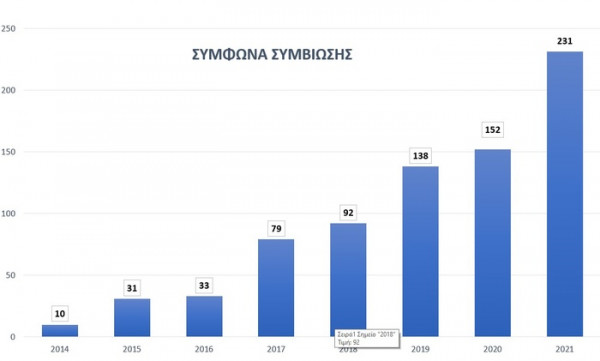 Αύξηση γεννήσεων, γάμων και υπερδιπλασιασμός συμφώνων συμβίωσης καταγράφηκε στην ευρύτερη περιοχή του Δήμου Χανίων, για την περίοδο 2014-2021, βάσει στατιστικών στοιχείων που δημοσιοποίησε ο ίδιος ο Δήμος Χανίων.
