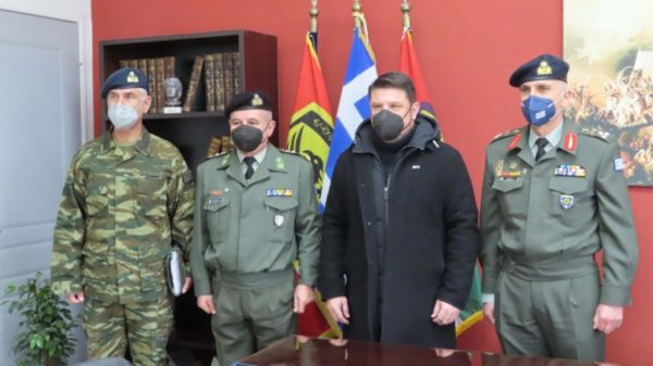Ο υφυπουργός Εθνικής Άμυνας σήμερα Τετάρτη 12 Ιανουαρίου 2022, επισκέφθηκε το Στρατηγείο του Γ΄ Σώματος Στρατού/NATO Rapid Deployable Corps-Greece (Γ΄ ΣΣ/NRDC-GR), τις έδρες των 113 Πτέρυγας Μάχης (ΠΜ), Ανωτάτης Διακλαδικής Σχολής Πολέμου (ΑΔΙΣΠΟ), Σχολής Πολέμου Στρατού Ξηράς (ΣΠΣΞ), καθώς και το 424 Γενικό Στρατιωτικό Νοσοκομείο Εκπαίδευσης (ΓΣΝΕ).