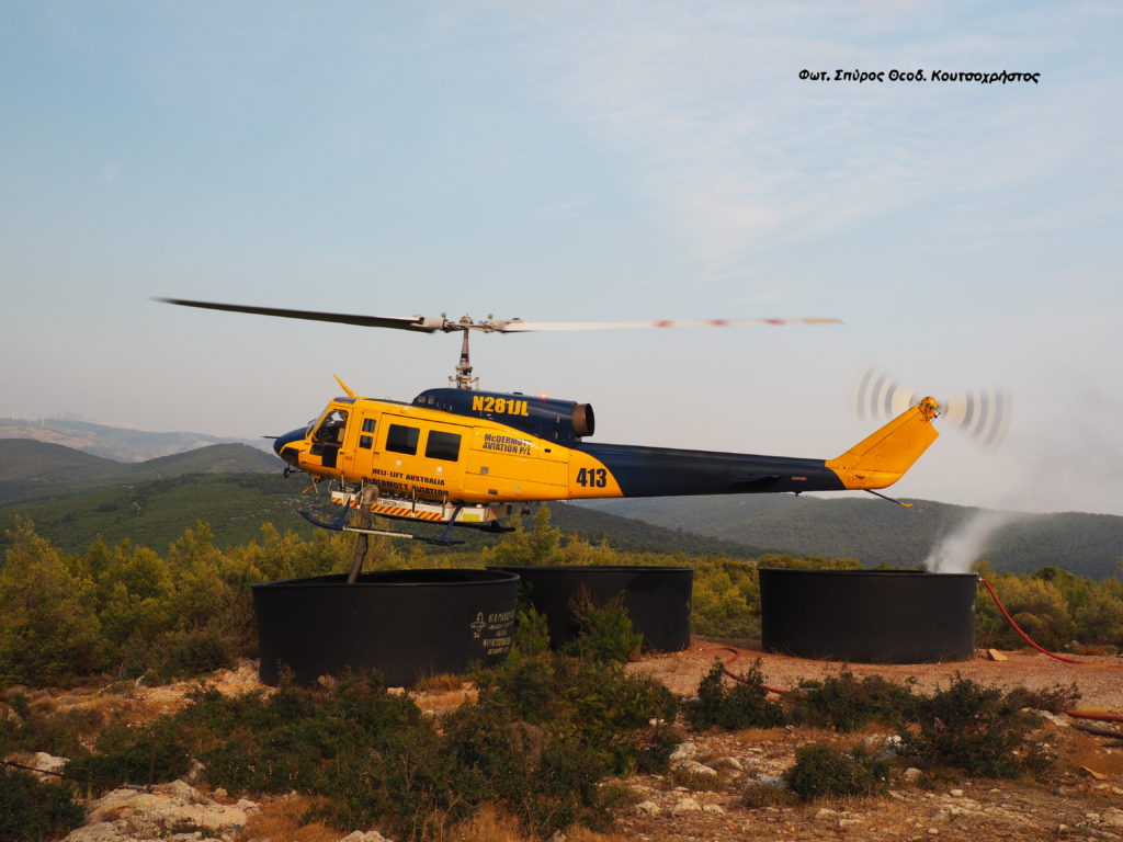 Η χρήση γλυκού νερού κατά την αεροπυρόσβεση είναι πλεονέκτημα, καθώς ελαχιστοποιεί τις περιβαλλοντικές επιπτώσεις. Στην κατάσβεση της μεγάλης δασικής πυρκαγιάς, που ξεκίνησε από το χωριό Βίλια Αττικής την Δευτέρα 16 Αυγούστου, είχαν εμπλοκή και ελικόπτερα διαφόρων τύπων.