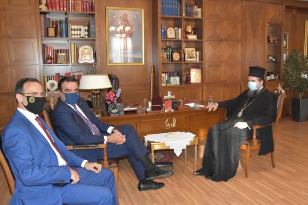 Ο Σεβασμιώτατος δέχθηκε εγκαρδίως τον κ. Σχοινά, στο Επισκοπείο Σερρών, συνοδευόμενο από τον Βουλευτή Σερρών κ. Θ. Λεονταρίδη, τον Δήμαρχο Σερραίων κ. Αλ. Χρυσάφη, τον Πρόεδρο του Δημοτικού Συμβουλίου Σερρών κ. Β. Κατιρτζόγλου, Αντιδημάρχους και λοιπούς υπηρεσιακούς παράγοντες και συζήτησε σε κλίμα αμοιβαίας κατανοήσεως ζητήματα επικαιρότητος, κοινού ενδιαφέροντος και προβληματισμού, όπως αυτό της πανδημίας, του μεταναστευτικού και της παρουσίας της ορθόδοξης Εκκλησίας στο ευρωπαϊκό γίγνεσθαι. Ο Σεβασμιώτατος τόνισε ότι, σύμφωνα με την ιδρυτική διακήρυξη των ευρωπαϊκών κοινοτήτων, ο πολιτισμός της Ευρώπης και η κοινή της μαρτυρία εδράζεται σε τρεις βασικούς πυλώνες, του αρχαίου δηλαδή ελληνικού πνεύματος, του νομικού πολιτισμού της αρχαίας Ρώμης και της χριστιανικής πίστεως.