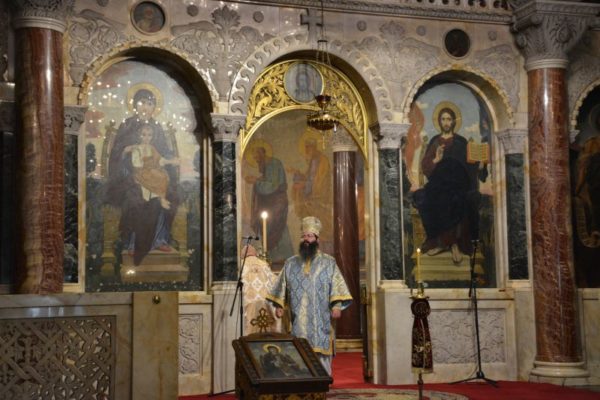 В края на Божествената литургия епископ Герасим прочете обръщение на Негово Светейшество Българския патриарх Неофит, в което се казва: “Раждението на Божията майка е неделима част от великата тайна, която апостолът нарича „скривана от векове в Бога, Който създаде всичко чрез Иисуса Христа“ (Еф. 3:9), защото осъществяването на това, че „Бог се яви в плът“ (1 Тим. 3:16), нямаше да бъде възможно без съработничество от страна на човешкия род, без нашето човешко участие, което е принесено в личността на Всесветата Пречиста Дева и Богородица. Рождеството й е предвкусване на тази най-повратна точка в цялата човешка история, когато Сам Бог ще стане човек, за да даде възможност на човека да изпълни същинското си предназначение и да стане бог по благодат (св. Атанасий Велики). От момента на Рождеството на Пресветата Владичица и Приснодева Богородица в историята на света започват да текат последните дни и години до Боговъплъщението, до спасителния миг на явяването на Божия Син сред нас. И затова на днешния празник Църквата пее и ликува, защото „днес на земята Всемогъщият Бог приготвя за Себе Си свят Престол, и така се поставя началото на нашето спасение“ (Стихира на Великата вечерня на Рождество Богородично)… Всесветата Дева е венец на хилядолетната старозаветна праведност. Благодарение на нея и на нейното осъзнато съдействие в домостроителното Божие дело старото отмина и епохата на Закона отстъпи, за да даде път на новата епоха, епохата на Благодатта и на любовта. В тази епоха живеем и ние днес, ползвайки се щедро от плодовете на Боговъплъщението, и от нас се очаква същото това осъзнато съдействие в богочовешкото домостроително дело. Защото тайнството на Богочовечеството – макар и неизменна част от Божия план за света, нямаше да стане възможно без нейното свято съизволение и участие: „ето рабинята Господня; нека ми бъде по думата ти“ (Лука 1:38)”.