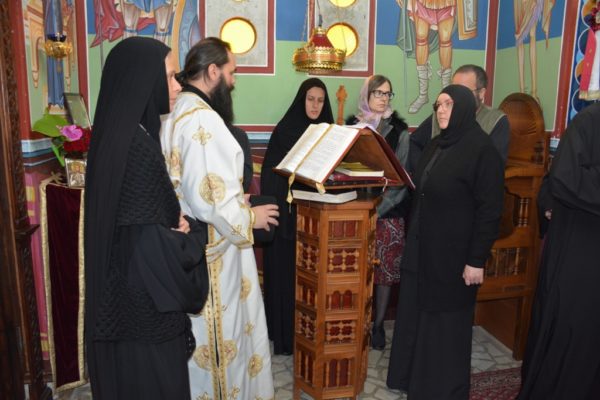 – Свети Јустин Ћелијски, кога данас прослављамо, је живео живот прожет Јеванђељем. У разговору је прво упућивао на Свето Писмо па је тек онда давао поуку и савете. Он је написао и књигу „Како треба читати Свето Писмо“ на основу проживљеног, јер је живео Светим Писмом. Ако живимо по Јеванђељу онда ћемо лако видети ко смо, шта смо и какви смо. Проверавати себе без Јеванђеља одводи у гордост, у сујету, а кад се проверавамо Јеванђељем и Црквом онда мењамо нешто у себи и код себе. Борба са собом је велика борба. Гордост нас тера да будемо окренути себи и да служимо себи, а Христос је рекао да није дошао да му служе него да послужи. Ми се устручавамо да послужимо другоме у било чему и гледамо да то неко други учини. Док не послужимо другоме, неће ни Бог нама послужити на наше спасење. Зато када живимо по Јеванђељу ми решавамо и личне и међуљудске односе. Тамо где се Јеванђеље не поштује, не ишчитава и не живи, тамо је хаос, беседио оје владика Јован.