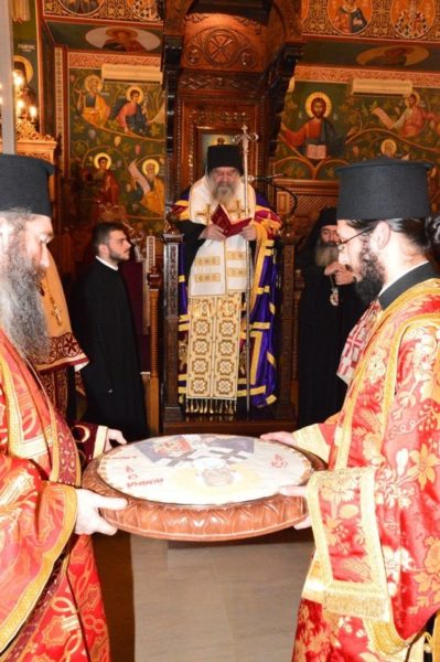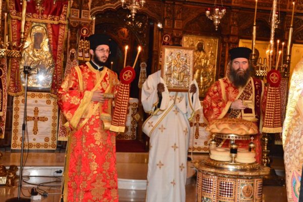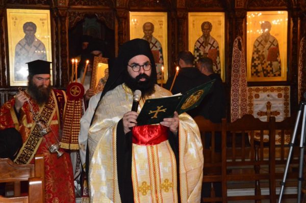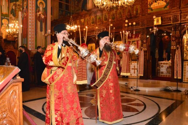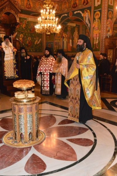 Праздничную вечерню отслужил Его Преосвященство Митрополит Лимассольский Афанасий, который празднует свои именины, в сослужении Его Высокопреосвященства Митрополита Вострийского Тимофея, Его Преосвященства Митрополита Тамассосского и Оринского Исаии, Их Преосвященств Епископов Месаорисйского Григория и Амафунсктого Николая.