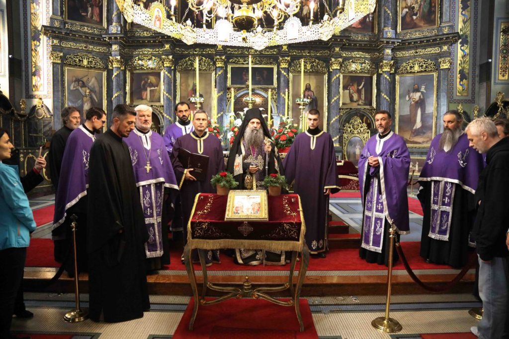 Његова Светост Патријарх српски г. Порфирије началствовао је 30. априла 2021. године, на Велики петак, вечерњим богослужењем са изношењем плаштанице у Саборној цркви Светог архангела Михаила у Београду.