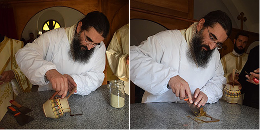 У часну трпезу на којој се служи света Литургија положене су мошти Светих мученика сурдуличких, који су пострадали током Првог светског рата. Уследило је евхаристијско сабрање на коме су Преосвећеном Епископу саслуживали су свештеници архијерејског намесништва лесковачког.