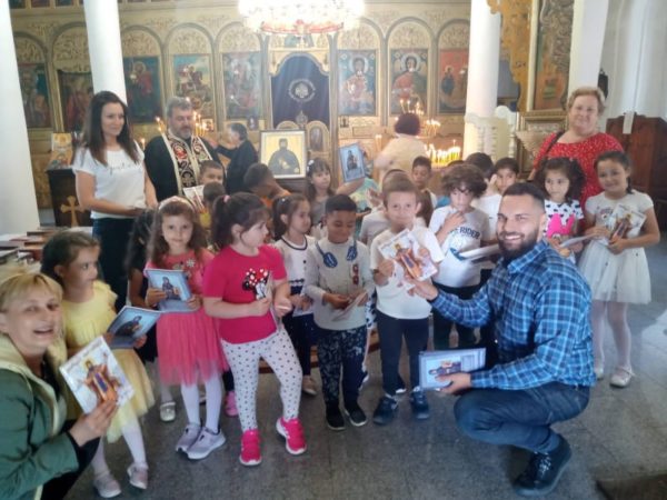 Групата на госпожа Кина Димова, получи ценни съвети от предстоятеля на църквата отец Николай Клюнков за паленето на църковната свещ, молитвата, както и за кръстния знак и прекръстването. Свещеникът, заедно с автора на книгите и филма за св. Ефрем, Ангел Бончев, разказаха на малчуганите житието на св. Ефрем Нови, след което децата едно по едно се поклониха и целунаха светия образ на Ефрем и получиха като подарък от Ангел Бончев детската книга за св. Ефрем Нови „Светецът светкавица“. Любопитни да научат за живота на светията, децата задаваха различни въпроси, на които получиха отговор за вярата, добротата, любовта към ближния и за Православието.