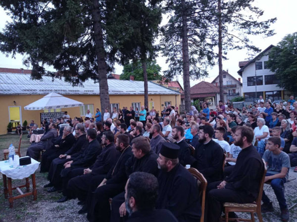 Након тога уследило је духовно вече у порти Цркве Светих царева Константина и Јелене, а реч на задату тему о оцу Неши произнели су протојереј-ставрофор Милић Драговић, протојереј Божо Главоњић старешина цркве у Пожеги, вероучитељ Саша Варагић и мештанин, члан грађевинског одбора Цркве у Расни Иван Кораћ. Након пригодних речи о лику и делу оца Неше уследило је премијерно приказивање докуменатарног филма о њему, који су радили Предраг Стојковић новинар и сниматељ, јереј Саво Величковић и ђакон Михајло Живковић. Порта је била испуњена верним народом, свештенством и монаштвом, који су са помешаним осећањима туге и радости обнављали сећања на нашег пастира и молитвеника пред Васкрслим Господом.