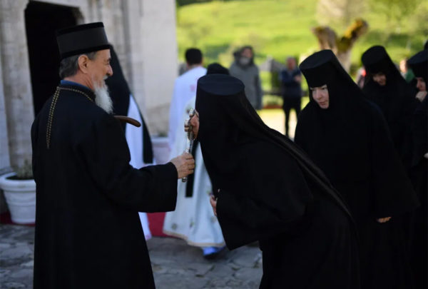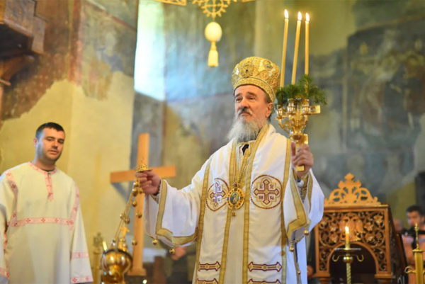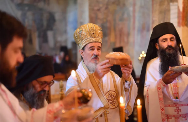 У току свете службе епископ Атанасије одликовао је протојереја Николу Перковића правом ношења напрсног крста, за изузетан труд у служењу манастиру Милешеви.