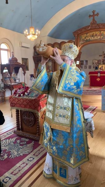 Његово Преосвештенство Епископ источноамерички г. Иринеј служио је 7. априла 2021. године, на празник Благовести, свету Литургију Светог Јована Златоустог у парохијској цркви Светог Георгија у Елизабету, Њу Џерси.