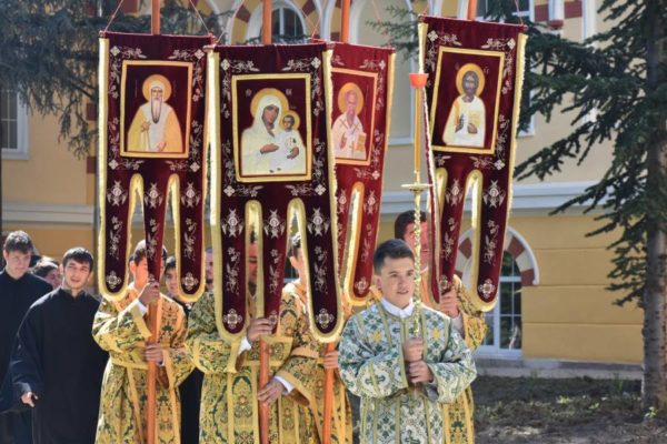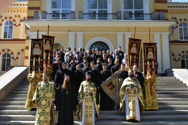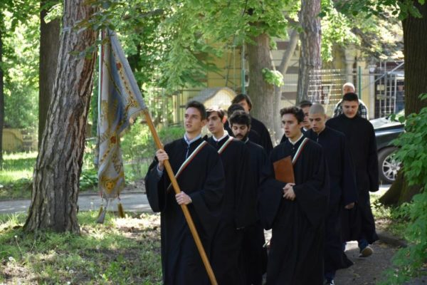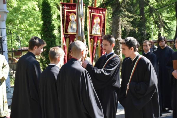Преди това в семинарския храм „Св. Йоан Рилски“ учениците взеха участие в св. Литургия, отслужена от архим. Пахомий в съслужение с йеромонах Мелетий, заместник-ректор на духовното училище, ефимерия свещ. Козма Поповски, протойерей Иван Иванов и дякон Слави Спасов, дългогодишен секретар на семинарията.