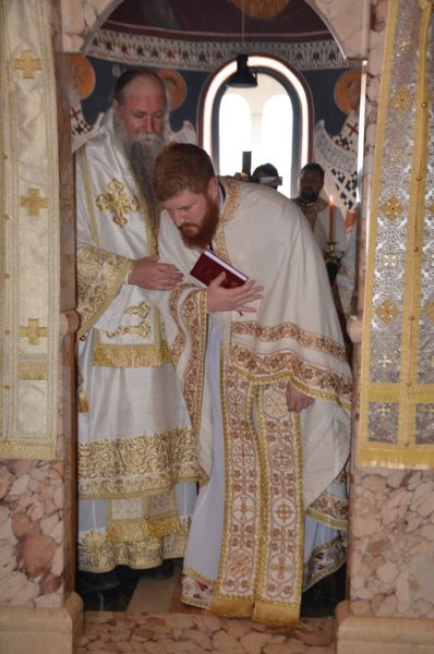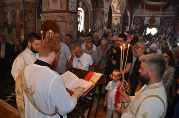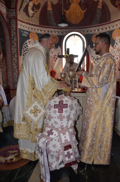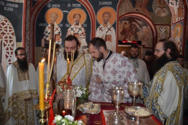 Свету службу Божију служио је са многобројним свештенством, свештеномонаштвом, монаштвом и вјерним народом изабрани Митрополит црногорско-приморски г. Јоаникије, који је у току Литургије у свештенички чин рукоположио ђакона Игора Пешикана, а у ђаконски чтеца Луку Павићевића.