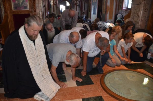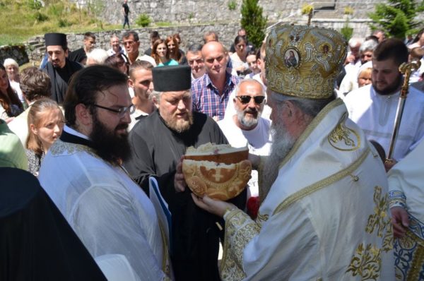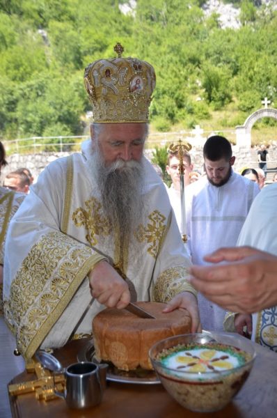 Након причешћа вјерних, око храма Рођења Светог Јована три пута је прошла литија са читањима Јеванђеља, а онда је Владика благосиљао славски колач.