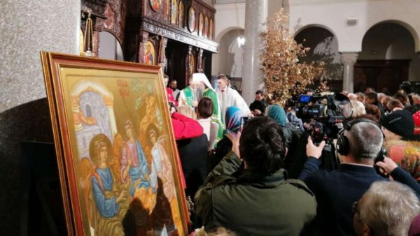 На крају свете Литургије епископ Јефрем је заблагодарио патријарху Порфирија на указаној љубави и доласку у Бања Луку да заједно прославе Светог архиђакона Стефана и да се помоле за српски народ и Републику Српску. Након беседе патријарх Порфирије је благословио славске дарове које је принела председница Републике Српске.