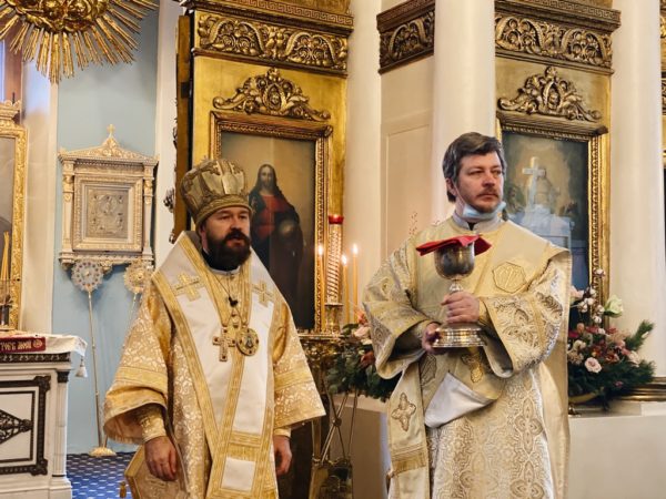 После сугубой ектении митрополит Иларион вознес молитву, во время распространения вредоносного поветрия чтомую.