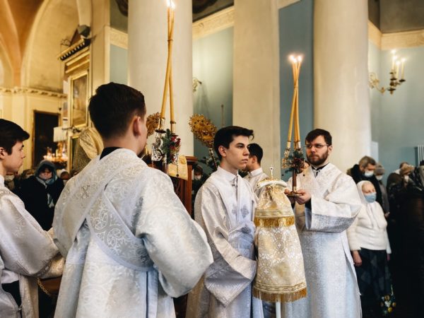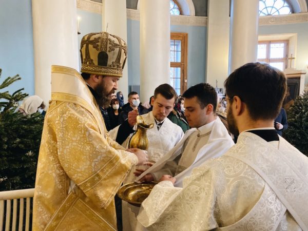 На сугубой ектении были возглашены молитвенные прошения об избавлении от коронавирусной инфекции.