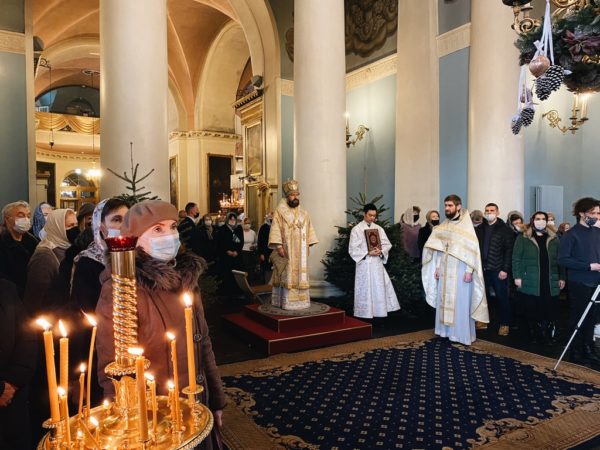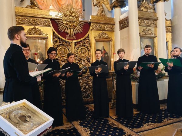 Затем для митрополита Илариона и прихожан храма на Ордынке прозвучали рождественские колядки в исполнении хора студентов Московской духовной академии под руководством регента Федора Суровцева.