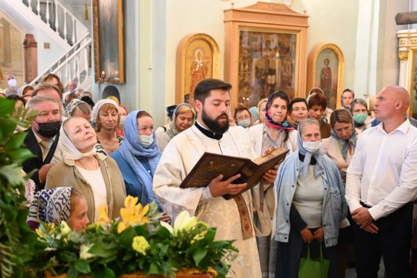 По завершении Литургии молебен святому Архангелу Гавриилу был совершен под открытым небом во дворе храма.
