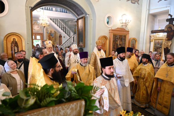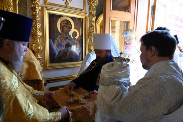 В память о совместном богослужении владыка Нифон вручил митрополиту Илариону и епископу Антонию святые панагии, а архимандриту Филиппу (Васильцеву) – памятный крест.