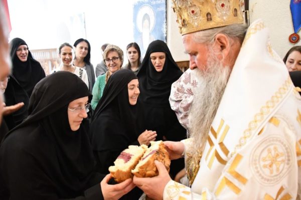 На крају Литургије благосиљан је пререзан је славски колач поводом имендана монахиње Софије.